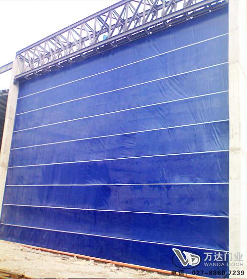 柔性大门是垂直折叠提升的江边乡电动门,尺寸可依据具体门洞制作,可以拥有独立自我支撑结构,其门板材质为双层聚纤维基布,内嵌突出的钢制圆管抗风条承载基布与强大的风压。